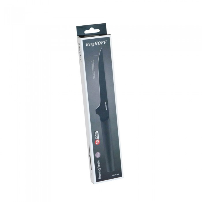 Особливості: ніж призначений для легкого та комфортного відділення м'яса від кісток; тонке, гостре лезо легко ковзає по м'ясу, забезпечуючи найкращий зріз; високоякісна нержавіюча сталь та титанове покриття леза забезпечать гостроту заточування на тривалий час; порожня округла ручка з нержавіючої сталі зручна та безпечна; безшовне з'єднання леза та рукоятки забезпечить додаткову гігієну; добре збалансований для підвищення контролю; підходить як для професійного, так і домашнього використання; легко очищується