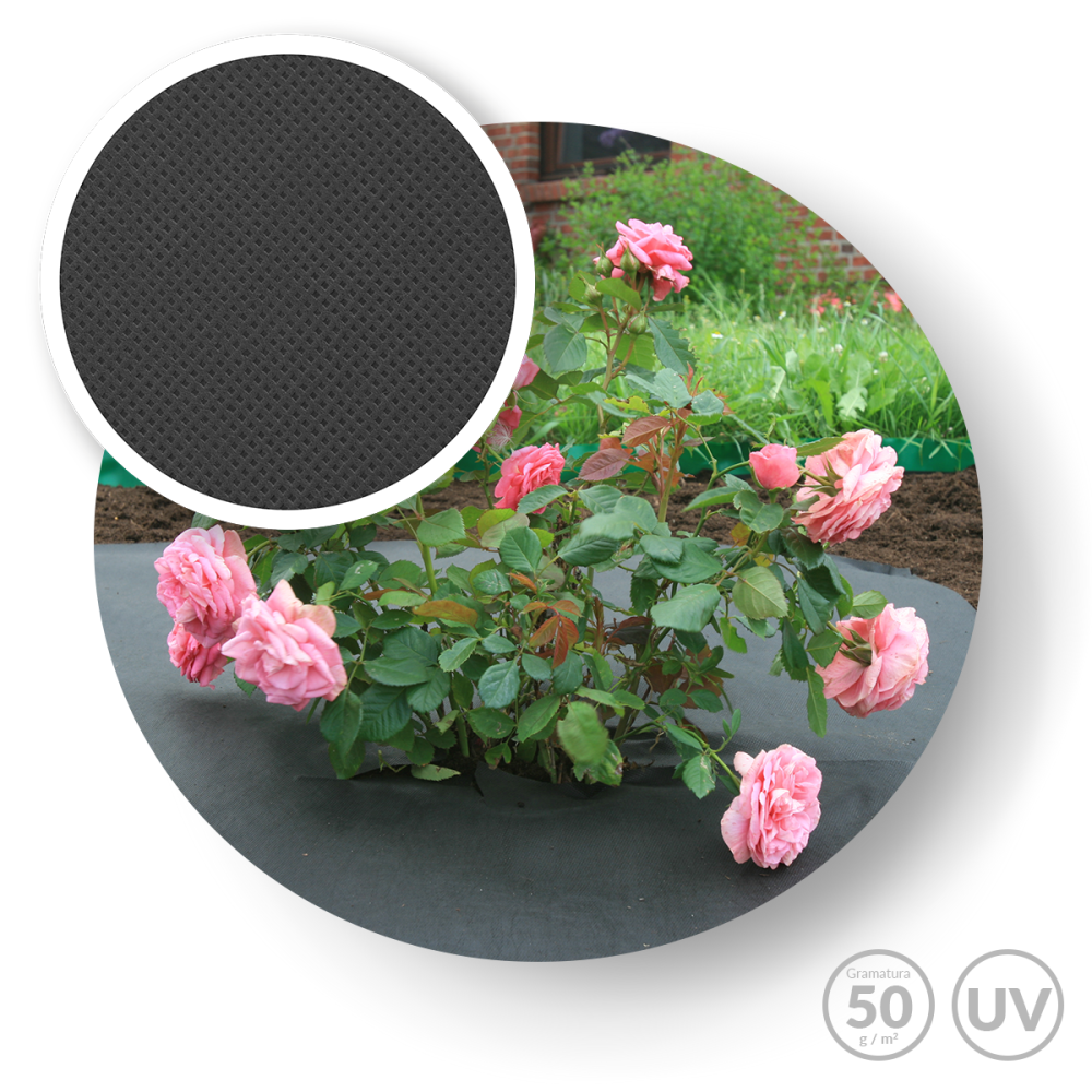 Завдяки активній УФ-стабілізації цей агротекстиль продовжує свою довговічність навіть під впливом сильного сонячного світла. Чорний колір не тільки притягує сонце, прискорюючи прогрівання ґрунту, але й ізолює мульчуючий матеріал від прямого контакту з ґрунтом, що додатково покращує естетику та функціональність у садах та насадженнях.
