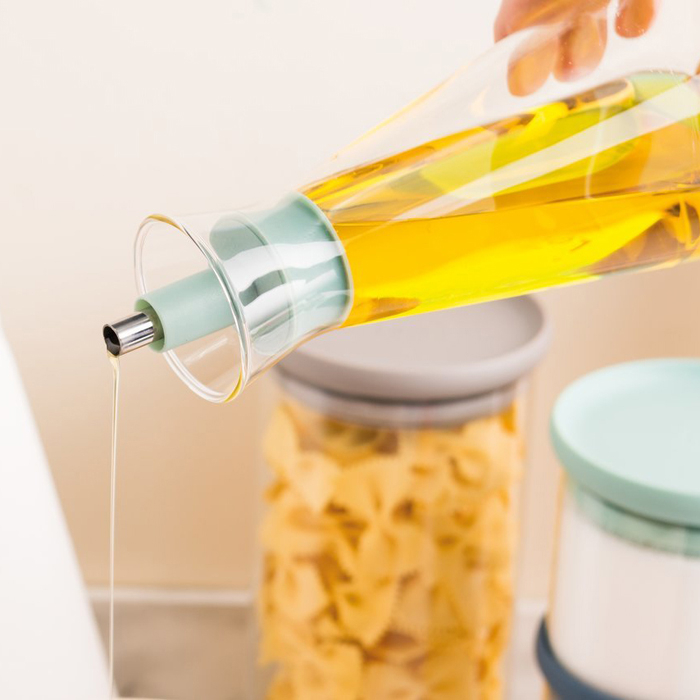 Пляшечка для олії виготовлена з боросилікатного скла. Пробка з дозатором виготовлена з поліпропілену, ковпачок для дозатора - силіконовий. Пляшечка має оригінальну форму, ергономічний дизайн. Комфортна у використанні.