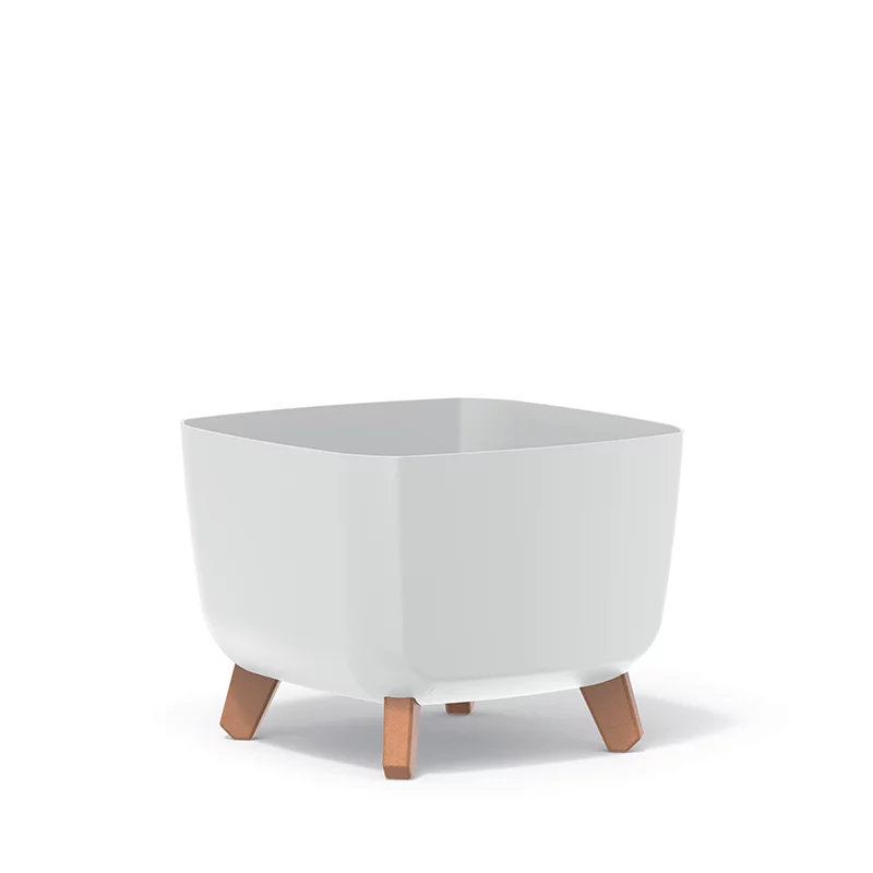Квітковий горщик Gracia Square має форму округлого квадрата та акуратну форму, яку підкреслюють ніжки зі структурою під дерево. Його нейтральна матова поверхня та вибір чотирьох сучасних кольорів роблять його ідеальним для багатьох сучасних інтер'єрів, привносячи дизайнерський акцент в інтер'єри та відкриті простори, такі як сад чи тераса.