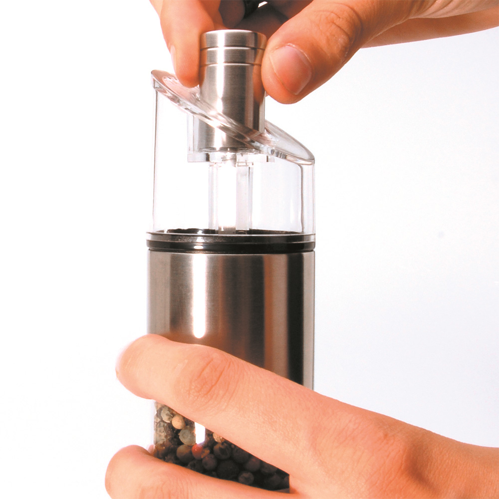 Особливості: функція 2 в 1 - в одній ємності зберігання перцю та солі; легке подрібнення перцю чи інших твердих спецій; підходить як для домашнього, так і для професійного використання