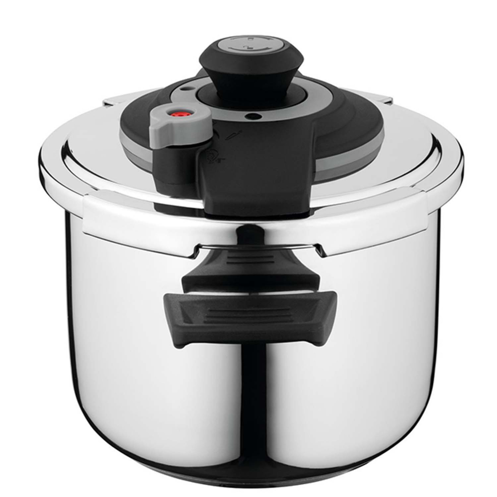 Скороварка виготовлена із високоякісної нержавіючої сталі 18/10, має 3-х шарове капсульне дно. Зовні дзеркальне полірування, всередині - матове. Ергономічні ручки чорного кольору, що не нагріваються. Кришка виготовлена з нержавіючої сталі 18/10, має клапан регулювання тиску. Усередині каструлі нанесено зручну розмітку. Скороварка підходить для всіх видів плит, включаючи індукційну. Завдяки функції приготування страв під високим тиском, суттєво заощадить ваш час та збереже максимум вітамінів та корисних речовин у продуктах. Каструля підходить для використання в посудомийній машині. Для кришки рекомендується ручне миття.