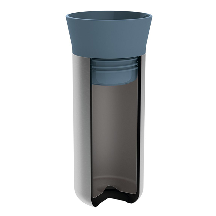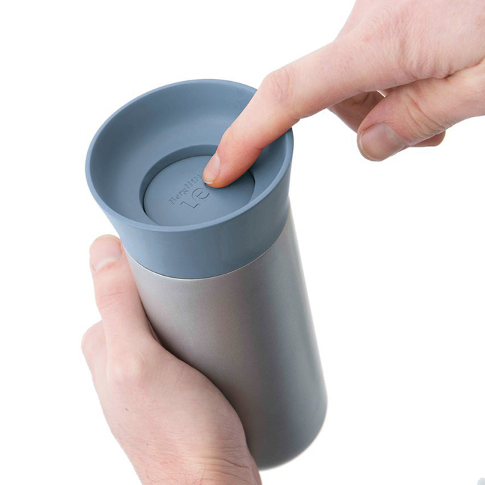 Термокухоль виготовлений з нержавіючої сталі, має ергономічний дизайн. Кришка з силіконовим ущільнювачем має високі борти, кнопковий механізм для зручного відкривання. Рекомендується мити вручну.