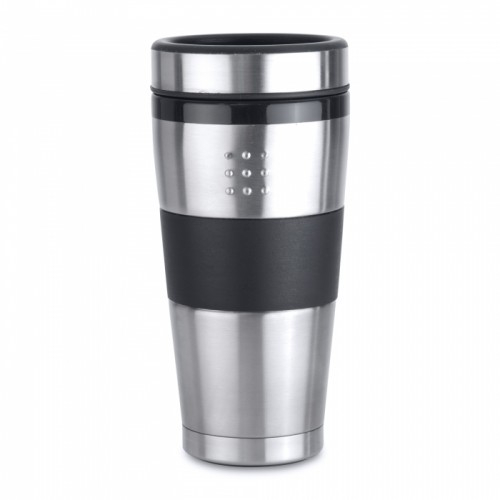 Дорожній кухоль виготовлений з нержавіючої сталі 18/10. Внутрішня частина із поліпропілену. Подвійна стіна. Прогумоване дно перешкоджає ковзанню. Підходить практично до кожного підсклянника в автомобілі.