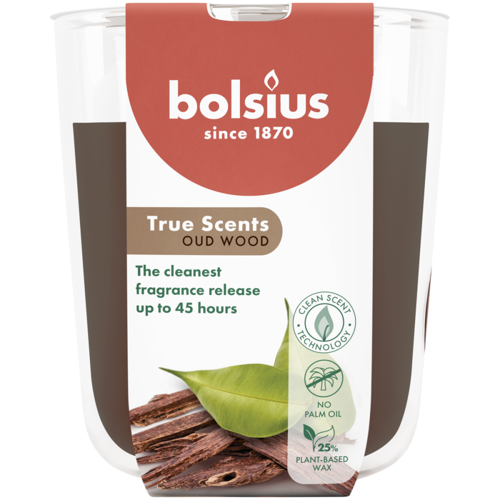 Велика, тепла коричнева ароматична свічка Oud Wood від Bolsius поміщена в прозоре скло та горить цілих 45 годин. Глибокий, теплий аромат Oud Wood складається з димних, деревних нот із чуттєвим характером. Створена за допомогою технології CleanScent, ми гарантуємо найчистіший аромат та найчистіше вивільнення аромату. Насолоджуйтесь теплим ароматом Oud Wood, вільним від небажаних речовин, у затишку власного дому.