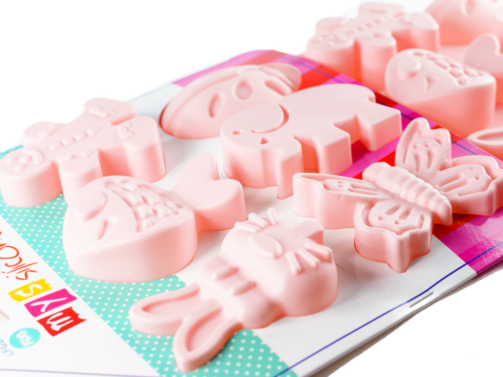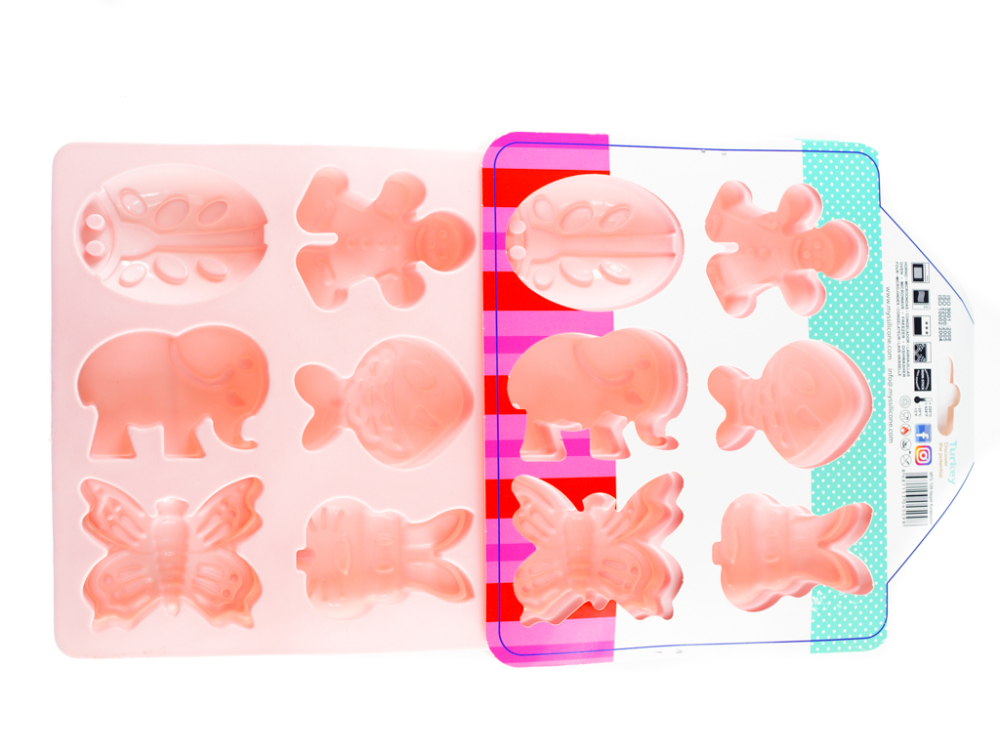 Форма силіконова MysSilicone для випікання кексів Звірі 12 осередків 19.5х34х4см рожева (MYS-45098)