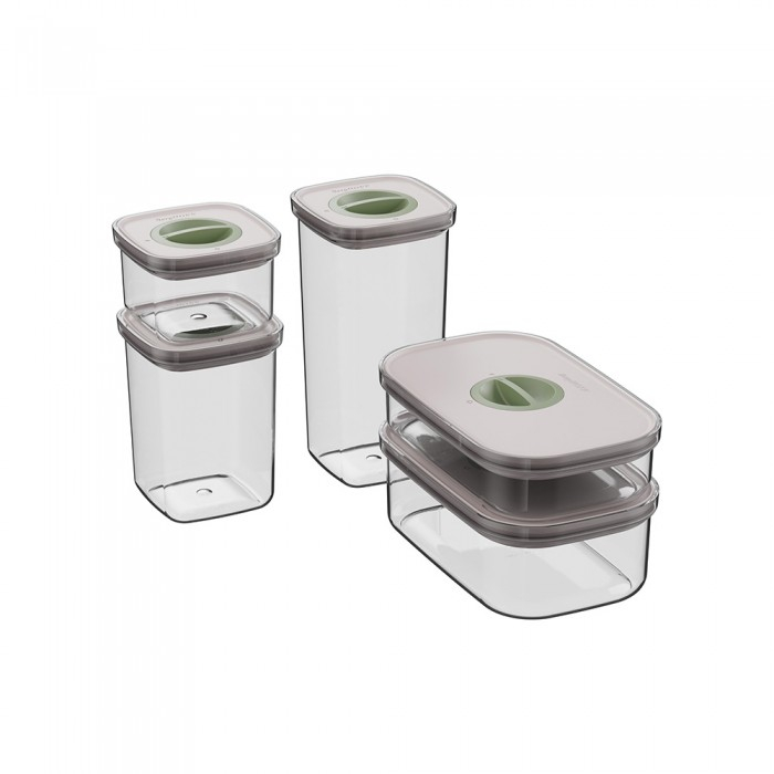 Особливості: герметичне, повітронепроникне ущільнення на кришках контейнерів для збереження свіжості та хрусткої текстури продуктів; поворотні кришки забезпечують надійне закриття; штабелюваний дизайн для економічного зберігання