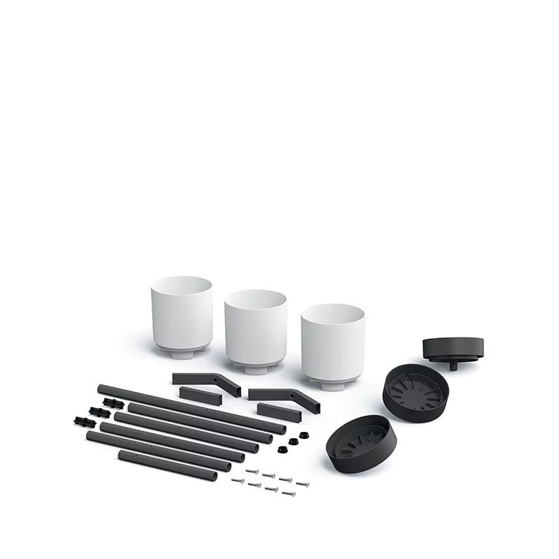 Висока клумба Bloomie Stand була спроектована так, щоб створити компактну композицію із трьох рослин, розташованих на трьох висотах. Він являє собою високий металевий каркас з підвісками, на яких розміщуються три горщики - на висоті від 72 до 102 см.