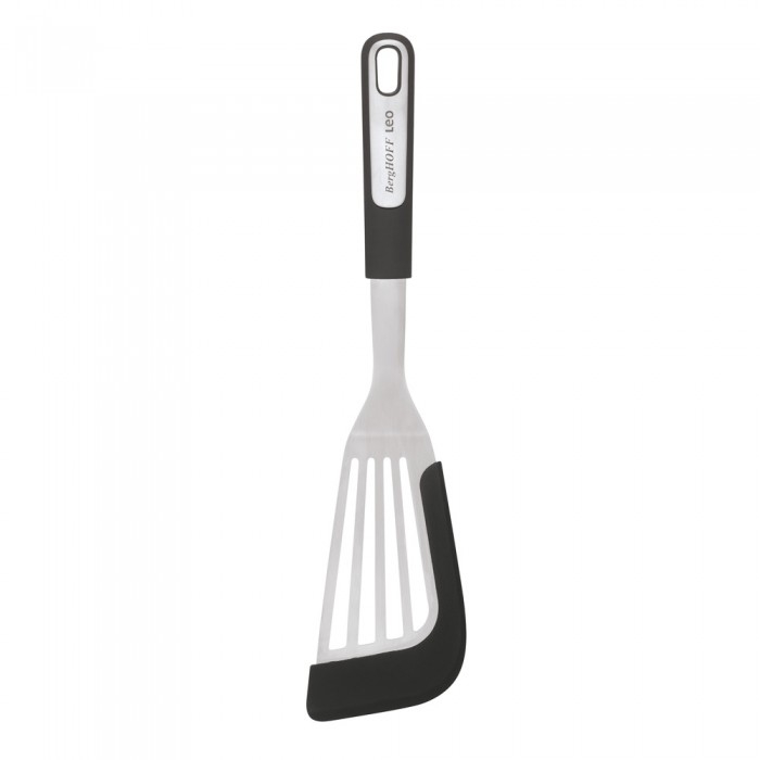 Особенности: изготовлена из высококачественной нержавеющей стали с ручкой из переработанного пластика; легкий материал для комфортного использования; благодаря силиконовому краю подходит для использования с антипригарным покрытием; длинный, тонкий, гибкий край лопатки удобен при жарке рыбы; имеет отверстие для хранения в вертикальном положении; глянцевая поверхность устойчива к появлению царапин