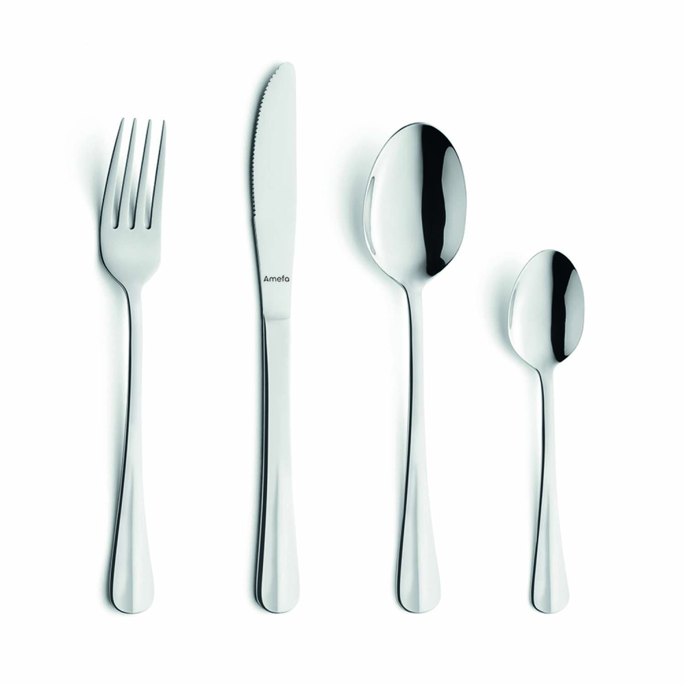 Ассортимент столовых приборов компании Amefa имеет множество разнообразных дизанов и форм, поэтому они подойдут к любому стилю в декоре. Дизайны варьируются от роскошной классики до сдержанного современного стиля. Нержавеющая сталь марки 18/10 указывает на наличие 18 % хрома и 10 % никеля в составе. Преимущество хрома - коррозионная стойкость. Благодаря никелю столовые приборы долгое время сохраняют свою блестящую поверхность. Все столовые приборы Amefa можно мыть в посудомоечной машине.