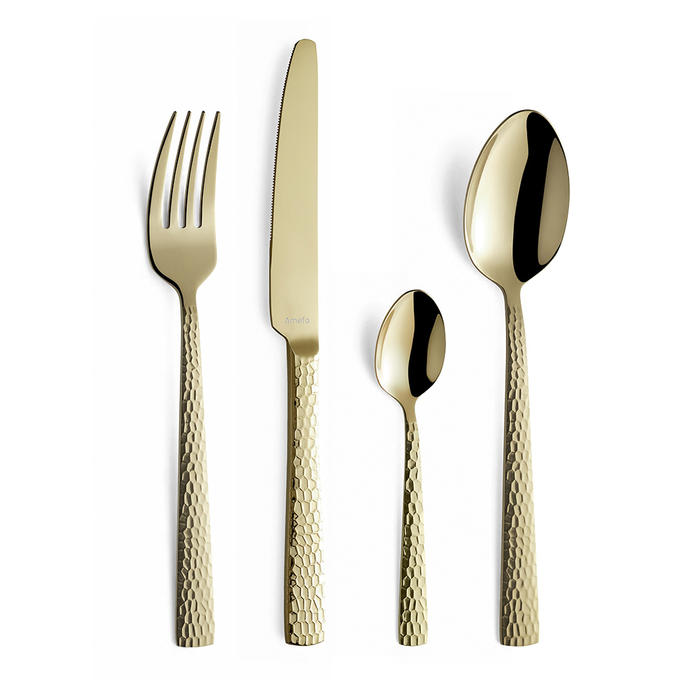 Ассортимент столовых приборов компании Amefa имеет множество разнообразных дизанов и форм, поэтому они подойдут к любому стилю в декоре. Дизайны варьируются от роскошной классики до сдержанного современного стиля. Нержавеющая сталь марки 18/10 указывает на наличие 18 % хрома и 10 % никеля в составе. Преимущество хрома - коррозионная стойкость. Благодаря никелю столовые приборы долгое время сохраняют свою блестящую поверхность. Все столовые приборы Amefa можно мыть в посудомоечной машине.
