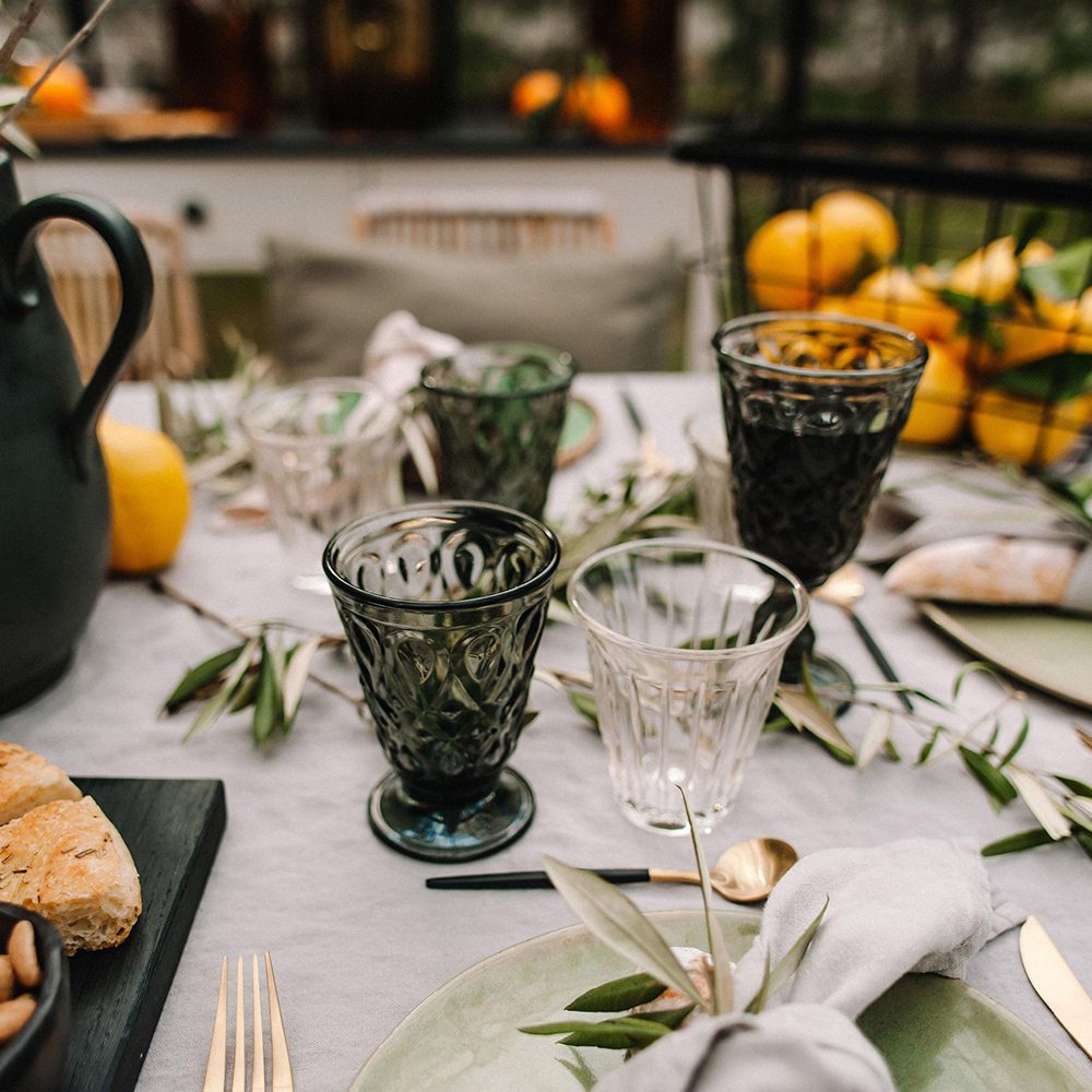 Фужеры и бокалы серии Lyonnais (Лион) отмечены украшениями итальянского двора конца XVI века. В средние века французский город Лион находился под художественным влиянием Италии, придавая предметам обихода грациозность флорентийского Ренессанса. Предметы данной серии представлены в двух цветах: дымчато-сером и розовом. Благодаря особой технологии прессования стекла, посуда из этой серии отличается высокой прочностью, подходит для мытья в посудомоечной машине и использования в микроволновой печи.