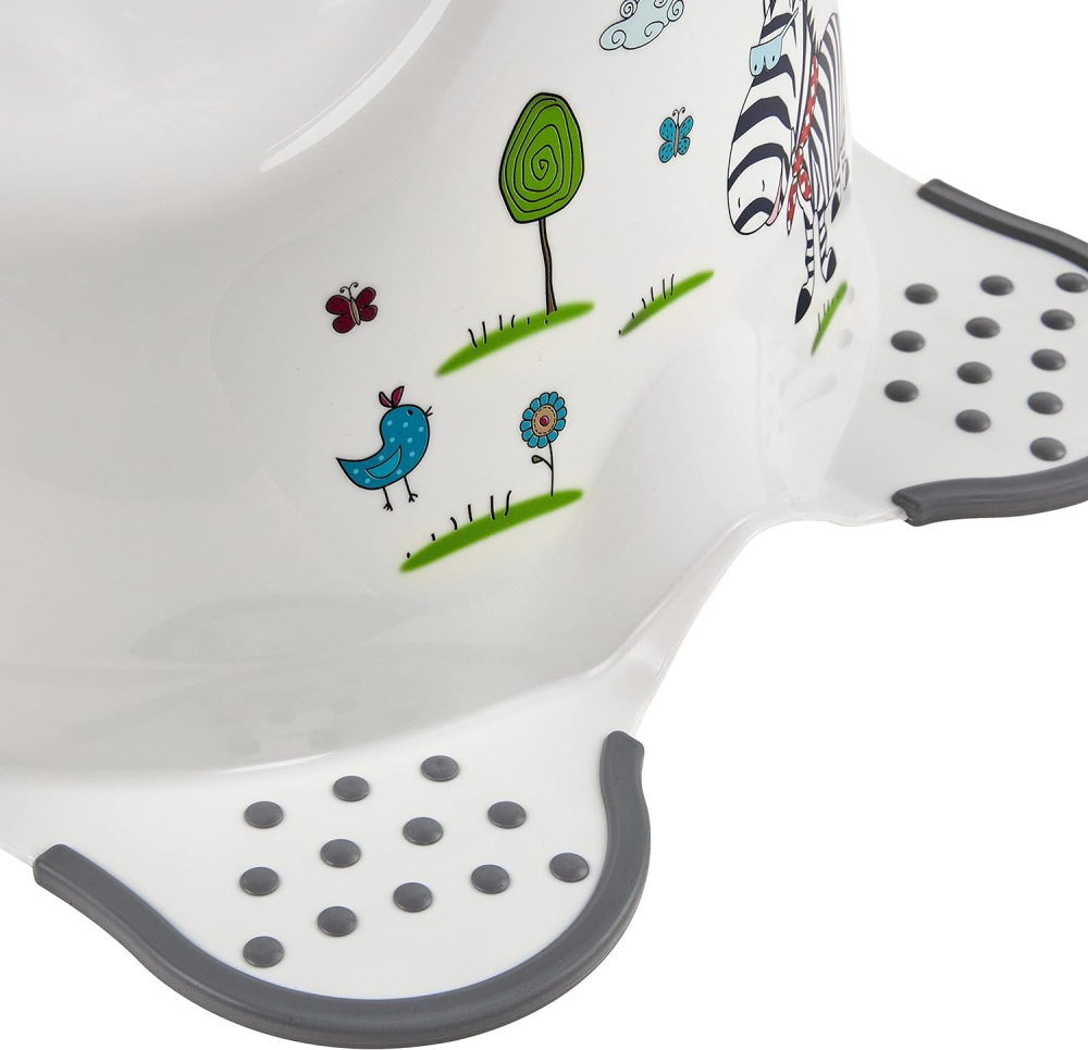 - Безопасно для детей: отсутствие наклона и скольжения благодаря противоскользящей системе с прорезиненными ножками, эргономичный дизайн с высокой спинкой и широким сиденьем, гигиеничное использование благодаря практичному брызговику.