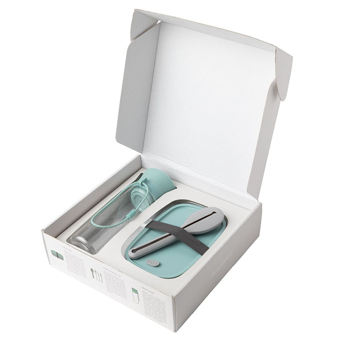 Этот набор для ланча - полноценный комплект посуды для обеда на свежем воздухе. Включает все необходимые аксессуары - двойной контейнер для еды, флягу для воды и столовые приборы. Контейнер изготовлен из качественного пластика, резинка - из силикона. Крышка контейнера снабжена специальным отверстием, благодаря которому контейнер можно использовать в микроволновой печи не снимая крышку. Фляга изготовлена из пластика, не содержащего вредных примесей и имеет силиконовую петлю для ношения. Крышка оснащена практичной системой «нажми и пей». Столовые приборы из нержавеющей стали - выбор тех, кто заботится об окружающей среде, поскольку они прекрасно заменяют пластиковые приборы. Для удобства хранения, столовые приборы снабжены силиконовым чехлом. Набор упакован в подарочную коробку. Подходит для мытья в посудомоечной машине.