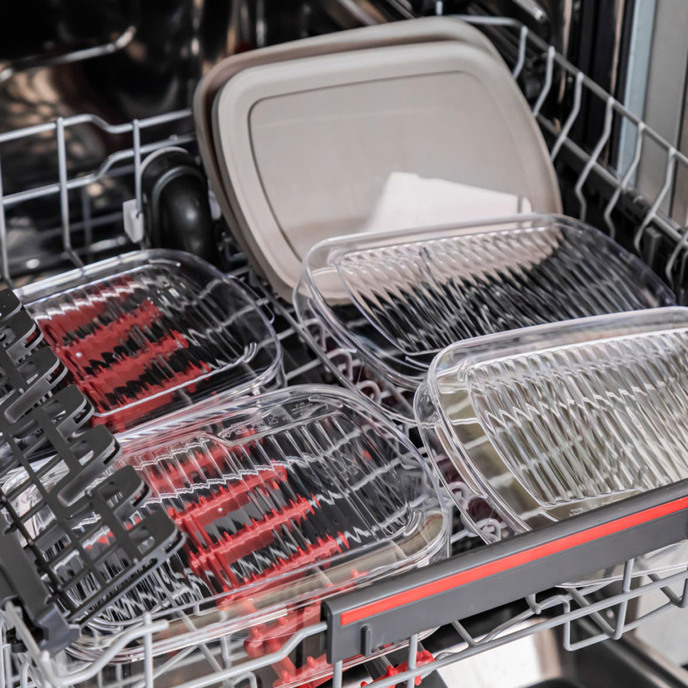 Особенности: изготовлен из высококачественного пластика без содержания BPA; три отдельных лотка для хранения мясной и сырной нарезки; герметичная крышка сохраняет свежесть, а ребристая внутренняя часть снижает вероятность появления конденсата и нежелательной плесени; подходит для морозильной камеры
