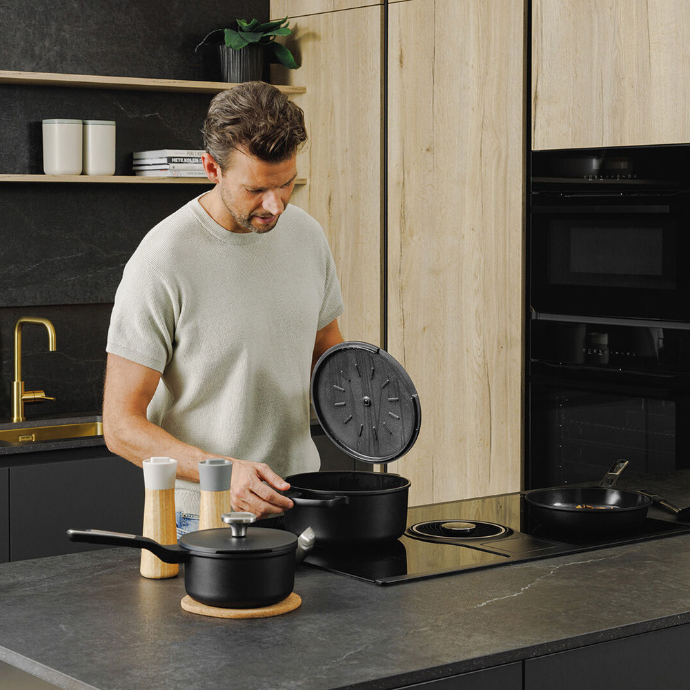 Особенности: серия Phantom — это идеальное сочетание экологичности, функциональности и минималистичного дизайна; корпус из литого алюминия обеспечивает быстрый нагрев и равномерное распределение тепла, облегчая приготовление и уход за посудой; 100% экологичное и безопасное для здоровья керамическое антипригарное покрытие CeraGreen, которое позволяет жарить практически без масла (не содержит PFAS); фенольная ручка удобна и безопасна; в ручке отверстие для вертикального хранения; цельнодисковое индукционное дно; крышка из алюминия с оригинальной ручкой из нержавеющей стали и логотипом LEO; с внутренней стороны крышки нанесен рельеф для сбора конденсата; сбоку крышки есть встроенное отверстие для удобного переливания и выхода пара; подходит для всех типов плит, включая индукционные; подходит для духовки; температурная устойчивость до 180°C; легко очищается