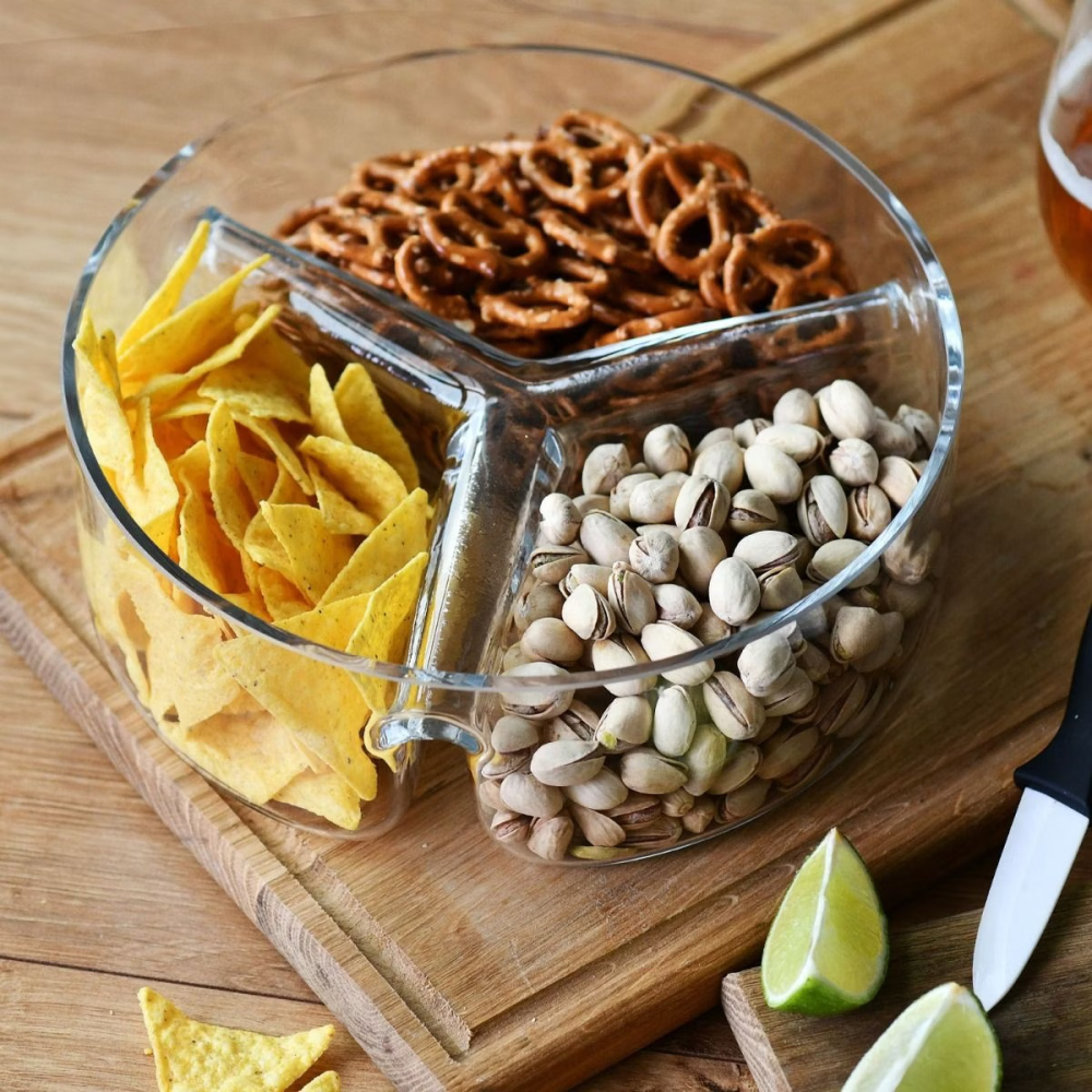 Ця кругла секційна салатниця середнього розміру ідеально підходить для подачі закусок, вона чудово підійде для сімейних зустрічей або вечорів з друзями. Це вражаючий, але функціональний предмет посуду, який порадує всіх ваших гостей і додасть родзинку будь-якій події. Унікальний дизайн — три окремі відділення, прямі стінки та гладкий, заглиблений край — сподобається любителям мінімалістичних форм. Завдяки трьом окремим відділенням салатниця є дуже функціональною, дозволяючи подавати одночасно такі страви, як чіпси, горіхи та кренделі. Миска традиційно виготовлена вручну, що приваблює любителів мистецтва та тих, хто цінує деталі. Кришталеве скло найвищої якості чудово демонструє вміст миски, роблячи її надзвичайно міцною та стійкою до механічних пошкоджень. Можна мити в посудомийній машині.
