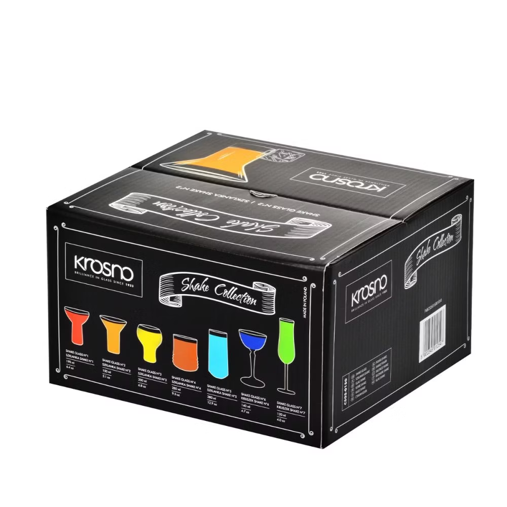 Келих для мартіні з колекції SHAKE – це абсолютно нова форма в асортименті бренду KROSNO. Цей інноваційний келих поєднує коротку, товсту ніжку з розкльошеною верхівкою. Така композиція дозволяє створювати вражаючі напої, наповнені до країв гарнірами. Товстіше дно допомагає підтримувати бажану температуру протягом тривалого часу. Його можна мити в посудомийній машині. Упаковка містить чотири келихи. Розроблений як данина напою Breakfast Martini.