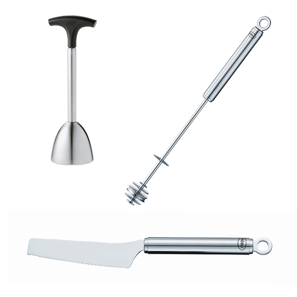 Набор для завтрака состоит из трех инструментов: ножа, ложки для меда и разрезателя яичной скорлупы. С этим набором ваш завтрак будет проходить комфортно и аккуратно. Предметы изготовлены из высококачественной нержавеющей стали 18/10. Можно мыть в посудомоечной машине.