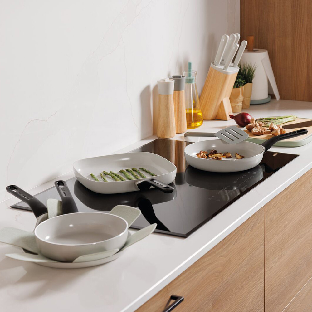 Особенности: корпус из алюминия обеспечивает быстрый нагрев и равномерное распределение тепла, облегчая приготовление и уход за посудой; 100% экологичное и безопасное для здоровья керамическое антипригарное покрытие CeraGreen, которое позволяет жарить практически без масла (не содержит PFAS); фенольная ручка для комфортного удержания и безопасности; 2-х слойное цельнодисковое дно; продуманный дизайн корпуса увеличивает рабочую поверхность на 25%; в ручке отверстие для вертикального хранения; подходит для всех типов плит, включая индукционные; подходит для духовки; температурная устойчивость до 180°C; легко очищается