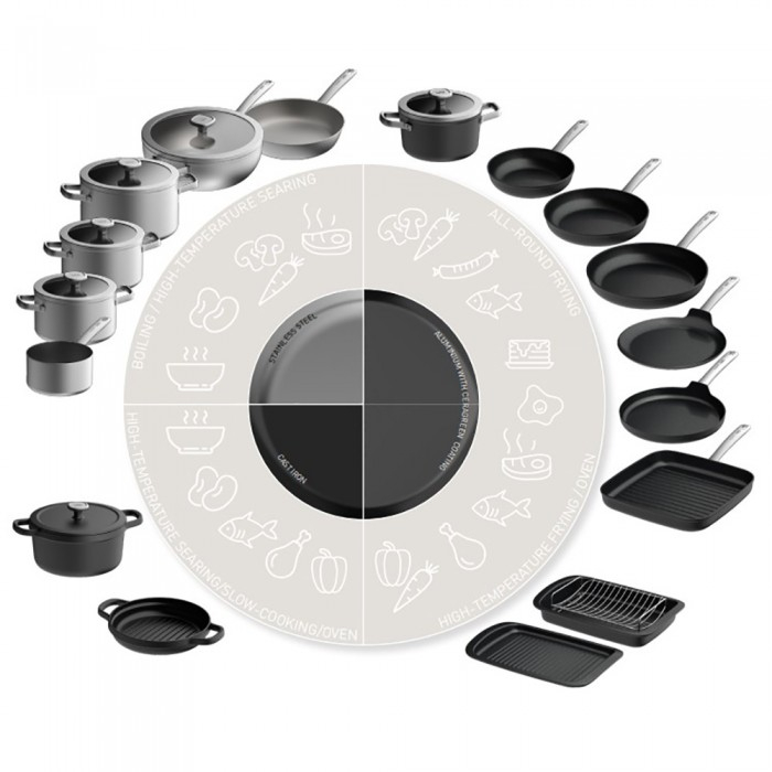 Особливості: 100% перероблений алюміній; 100% екологічне та безпечне для здоров'я керамічне антипригарне покриття CeraGreen, яке дозволяє смажити практично без олії; легкий матеріал; 2-х шарове цільнодискове дно для швидкого та рівномірного розподілу тепла та енергоефективного приготування їжі; безшовна конструкція для додаткової гігієни; стійка до нагрівання до 230 ° C; легко очищується; у ручці отвір для вертикального зберігання; підходить для всіх типів плит, включаючи індукційні