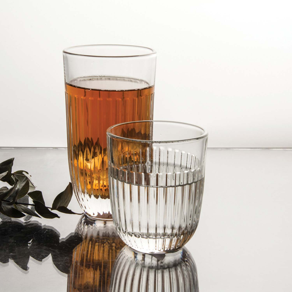 Висока склянка із серії Ouessant. Назва серії відносить нас до одного із регіонів півночі Франції. Сувора класика, на кшталт сільського мінімалізму - відмінна риса цієї серії. Завдяки особливій технології пресування скла, посуд із цієї серії відрізняється високою міцністю, підходить для миття в посудомийній машині та використання в мікрохвильовій печі.