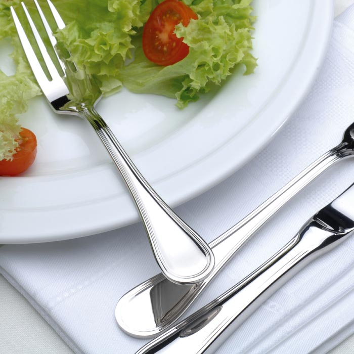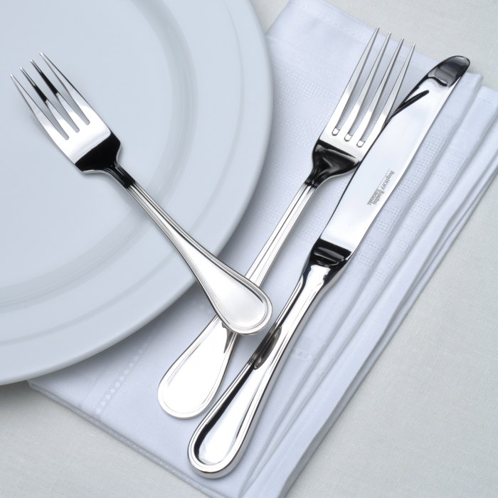 Столовий ніж виготовлений з нержавіючої сталі 18/10, має дзеркальне полірування. Оригінальний дизайн. Довжина 24 см.
