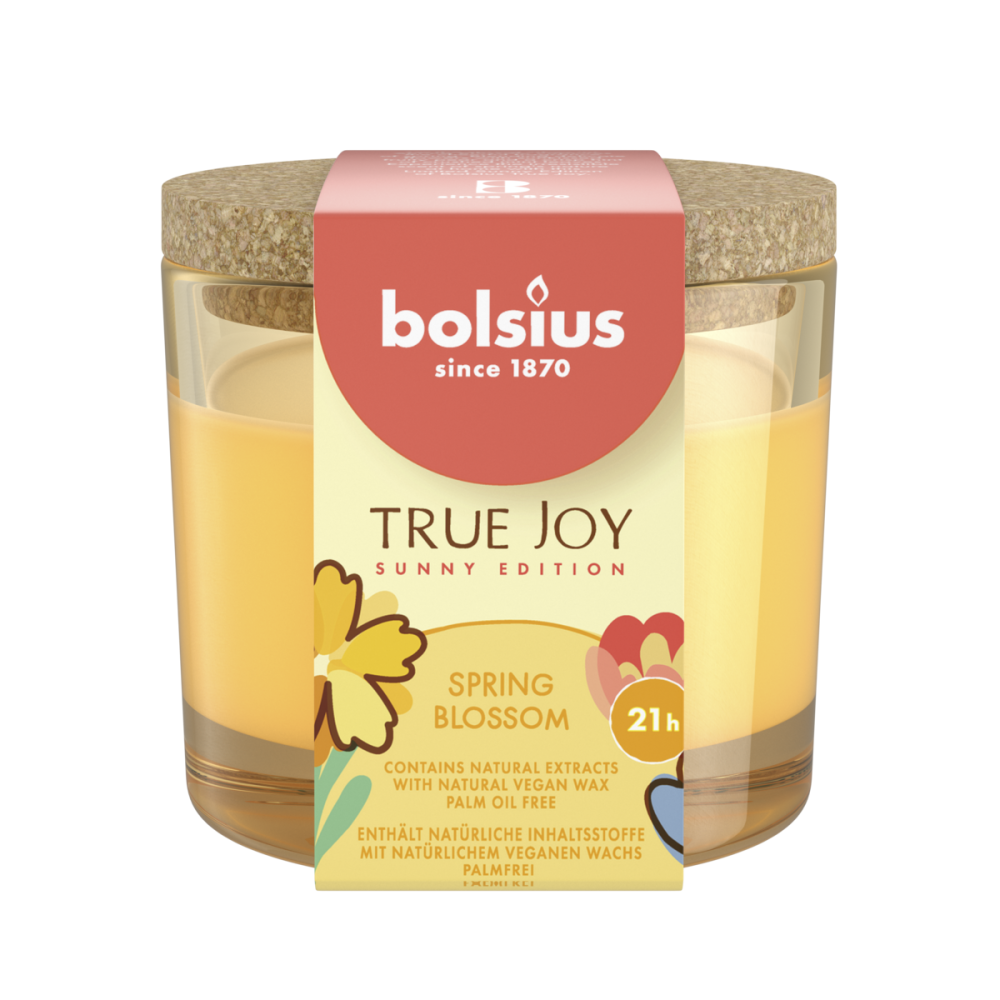 Свічка у склі ароматична Bolsius True Joy Daffodil 6.6х8.3см із пробкою, аромат Весняне цвітіння (BOL-996712)