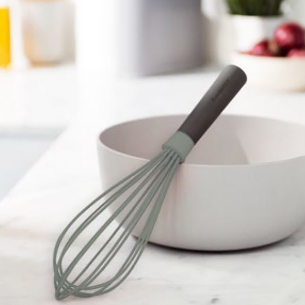 Особливості: виготовлений із переробленого пластику; не шкодить антипригарному покриттю посуду; термостійка силіконова основа; легкий матеріал; петля на ручці для вертикального зберігання